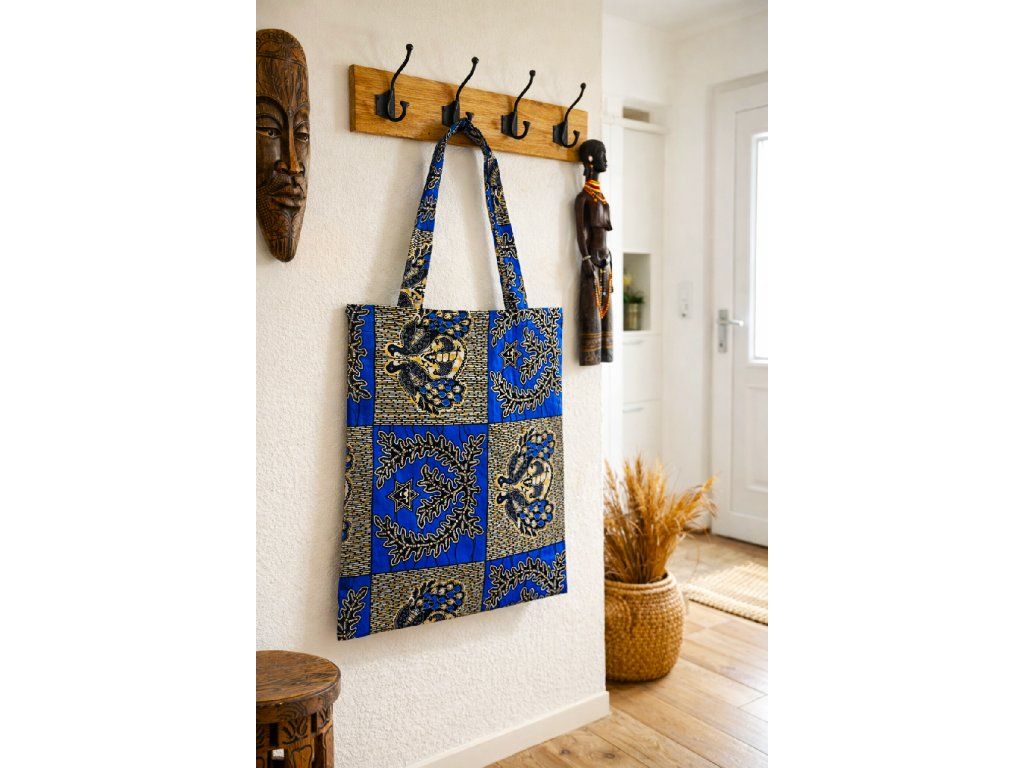 Ručně šitá látková taška z kvalitní africké látky dovezené přímo z Beninu. Díky velmi odolnému materiálu je pevná, spolehlivá a bez problémů unese i těžší nákup. Každý kus je originál s příběhem Afriky.