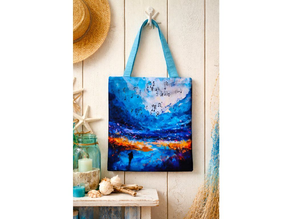 Ručně šitá látková taška s překrásným motivem , kvalitně zpracovaná pro pohodlné nošení. Přední díl tašky je panel z kočárkoviny. Zadní strana je ušitá z bavlněné světle modré režné látky.