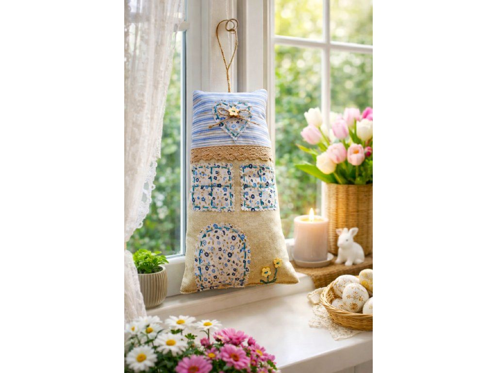 látkový domeček na zavěšení, krásná a originální dekorace pro váš domov, ušito z kvalitních bavlněných materiálů, zdobené krajkou a plněné dutým vláknem