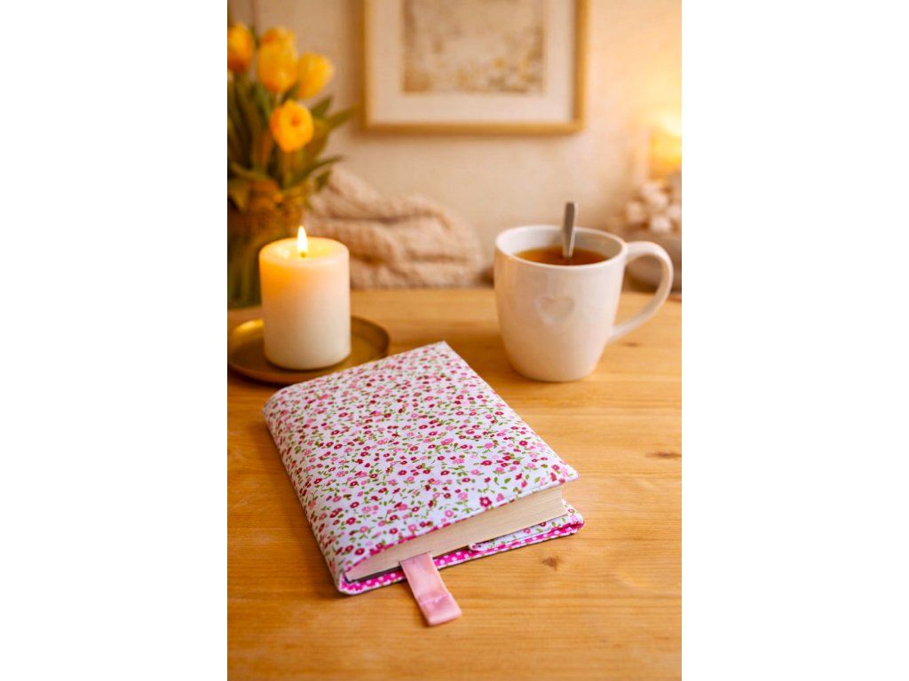 Překrásný látkový rostoucí obal na knihy. Ušitý z překrásné látky s růžovými kvítky. Je z třívrstvého materiálu, uvnitř všitý termolín.