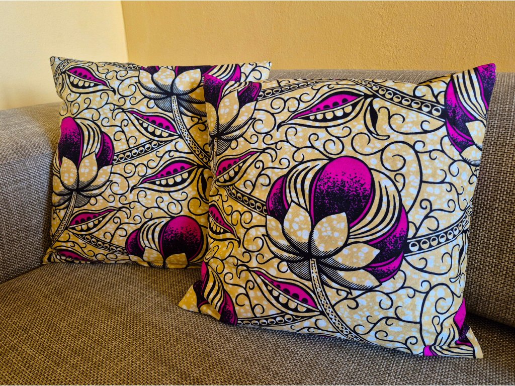 klasický rozměr povlaku na polštář 40x40cm, zapínaní na skrytý zip, materiál africká látka ( dovoz Benin v západní Africe )
