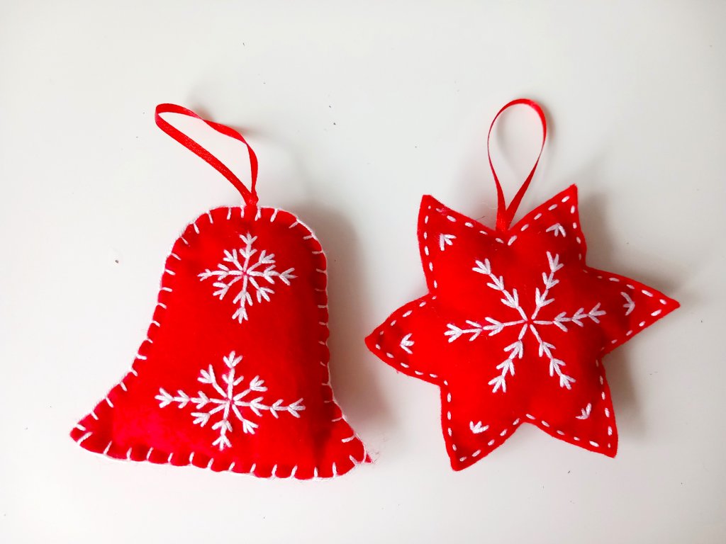 Ručně vyšívané ozdoby z filcu a plněné dutým vláknem, velikost každé ozdoby cca 11x11cm